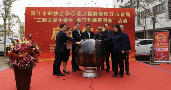 1月27日,由阳江市总工会主办,阳江市邮政管理局、阳江市快递协会、阳江高新区总工会协办,阳江市邮政分公司和广东广青金属科技有限公司共同承办的阳江市邮快合作示范点揭牌暨首届“工邮关爱手牵手,春节包裹寄回家”活动启动仪式成功举行。
