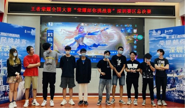 4月24日,“第三届王者荣耀全国大赛城市赛道海选-荣耀邮你全民挑战赛”深圳赛点总决赛在深圳举办并圆满收官。当天分别由“国服绑手”战队和“深圳快乐星球”战队参与最终的冠军争夺赛,“国服绑手”战队一路过关斩将,最终以2:0的成绩碾压对手,夺得冠军。该赛事由中国邮政携手王者荣耀全国大赛、腾讯王者人生共同发起,深圳赛区由深圳邮政承办。当天通过线上预约,有90人来到现场进行观赛。本次活动在虎牙app上同步进行了现场直播,线上观战人数达5.3万人。