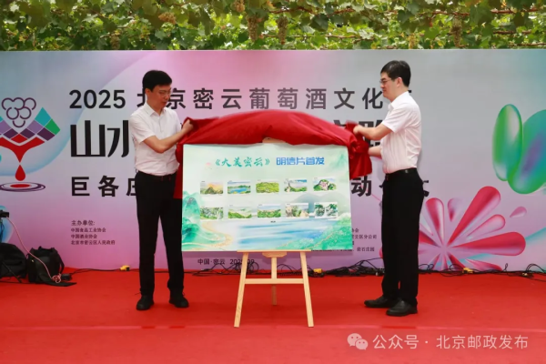 启动仪式上,密云区副区长施辉阳、中国邮政集团有限公司北京市分公司副总经理王贺利共同为《大美密云》明信片揭幕。该明信片以邮政文化为载体,集中展现密云自然风光和农业特色,成为推广区域品牌、传播乡村文化的新媒介。