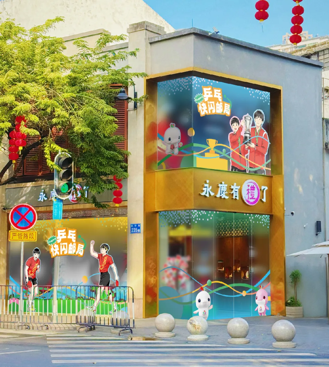 十五运前夕,广州邮政创新打造全国首个以乒乓球为主题的文化快闪邮局,在广州文旅地标永庆坊正式亮相,开业首日吸引近3000人打卡。