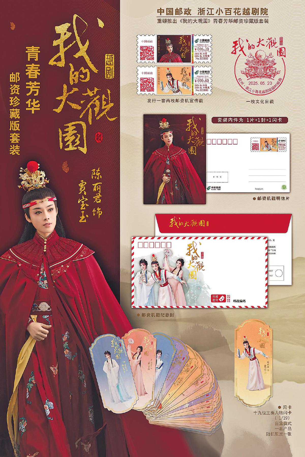 “在和浙江小百花越剧院沟通时,我们围绕《我的大观园》进行产品的创新设计:以主角形象为核心元素打造系列封片产品,并将19位主要演员的风采制成收藏级闪卡。这份寄给广大戏迷的独特礼物,兼具文化传播与文创收藏价值,让越剧之美触手可及。这一创意得到浙江小百花越剧院的认可。他们觉得这对于这部剧的宣传以及对于越剧文化的传播都是非常有益的。”浙江省分公司邮政业务部函包业务室主任陈志皓介绍道。