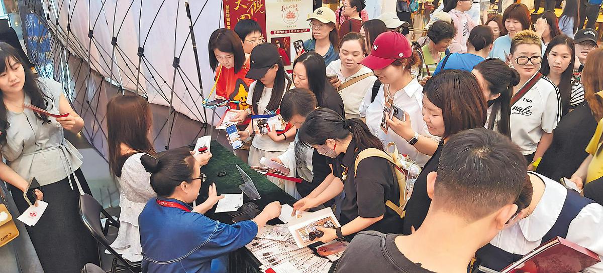“我们都是陈丽君、李云霄的粉丝。这个周边也太有意义了,不仅有她们在剧中人物形象的邮资机宣传戳,还有19枚主要演员的闪卡,直接扫码就能购买,还挺方便的!”从南京赶来观演的张小姐兴奋地说。