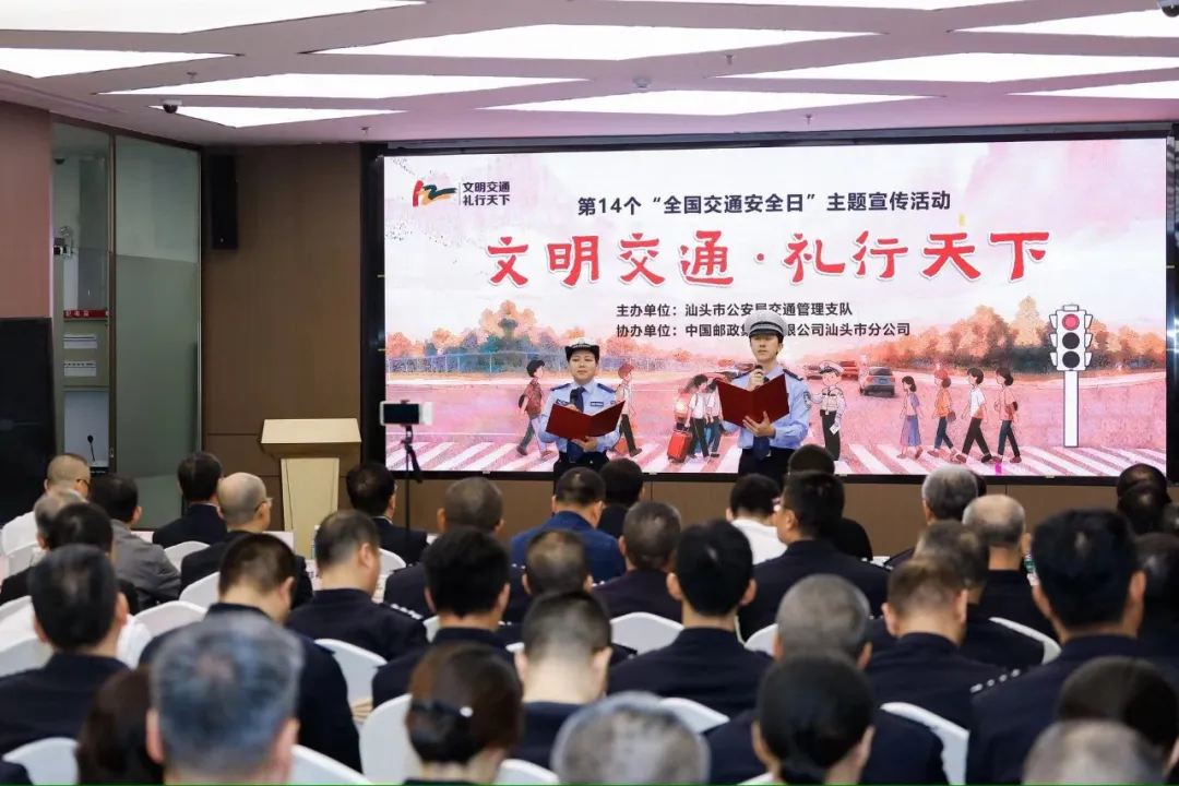 2025年12月2日是第十四个全国交通安全日,主题为“文明交通 礼行天下”。当天,汕头邮政与市公安局交通警察支队联合举办主题宣传活动,以创新形式提升公众安全意识,市公安局、文明办、司法局等多部门及市民代表共同参与。