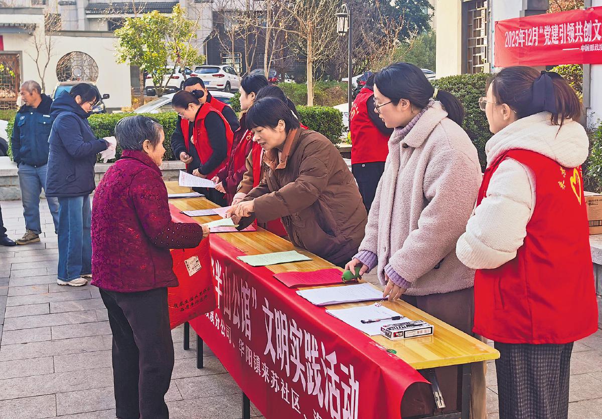 12月15日,安徽省绩溪县半山公馆小区广场人头攒动,来苏社区党委和绩溪县邮政分公司党支部在此联合开展主题党日活动。