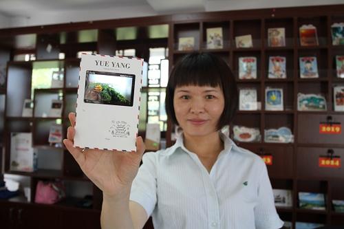服务人员展示岳阳楼主题邮局的邮品。 文峰 摄