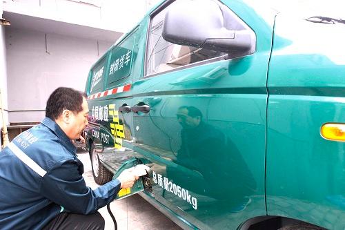 据了解,新能源邮政运输车续航里程达185公里,车厢最大空间4.3立方米,最大载货量为600公斤。新能源邮政运输车拥有超大载物空间、超强智能管理、超长续航里程、超级安全舒适及超低使用成本五大领先优势,能够满足城市投递工作的日常需要。未来,北京邮政将投入更多的新能源汽车,提升城市邮政的配送运输智能化程度,为首都环保贡献更大力量。图为邮政驾驶员为新能源汽车充电。