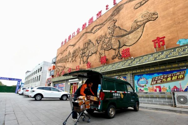 在二连浩特市的垚金进口仓储超市里,揽收员廖海雨一天两次来揽收邮件,使游客们买到的商品能够当天发出直发回家。