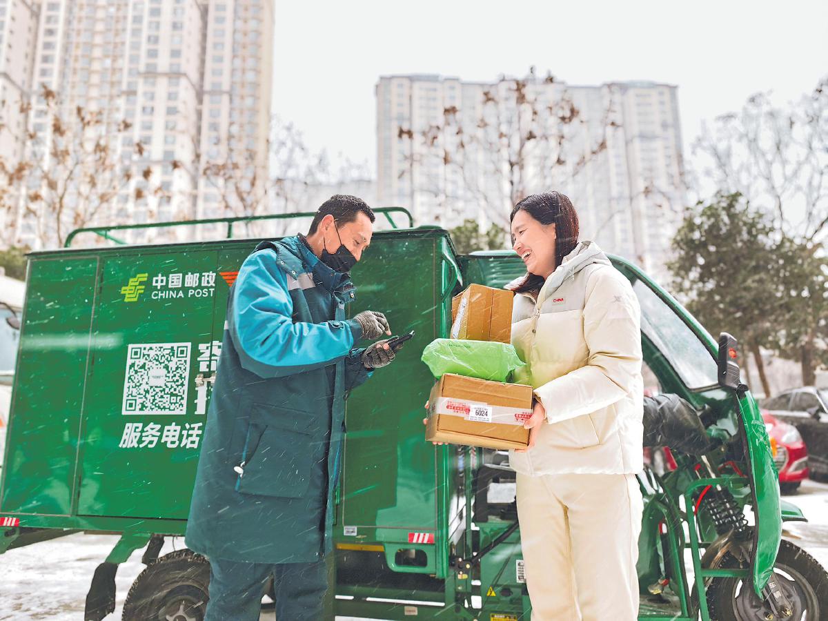 自1月18日起,河南多地迎来大范围低温雨雪冰冻天气,邮政企业积极应对天气变化,确保通信畅通。1月19日,河南省南阳市漫天飞雪,气温降至零下7摄氏度。邮政投递员克服道路湿滑等困难,在银装素裹的城市里忙碌穿梭,把一件件带着温度的包裹准时、安全送到客户手中。