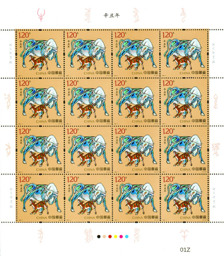 中国邮政定于2021年1月5日发行《辛丑年》特种邮票1套2枚,小本票1本。详情如下: