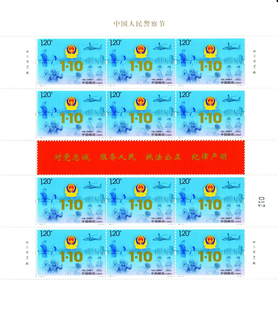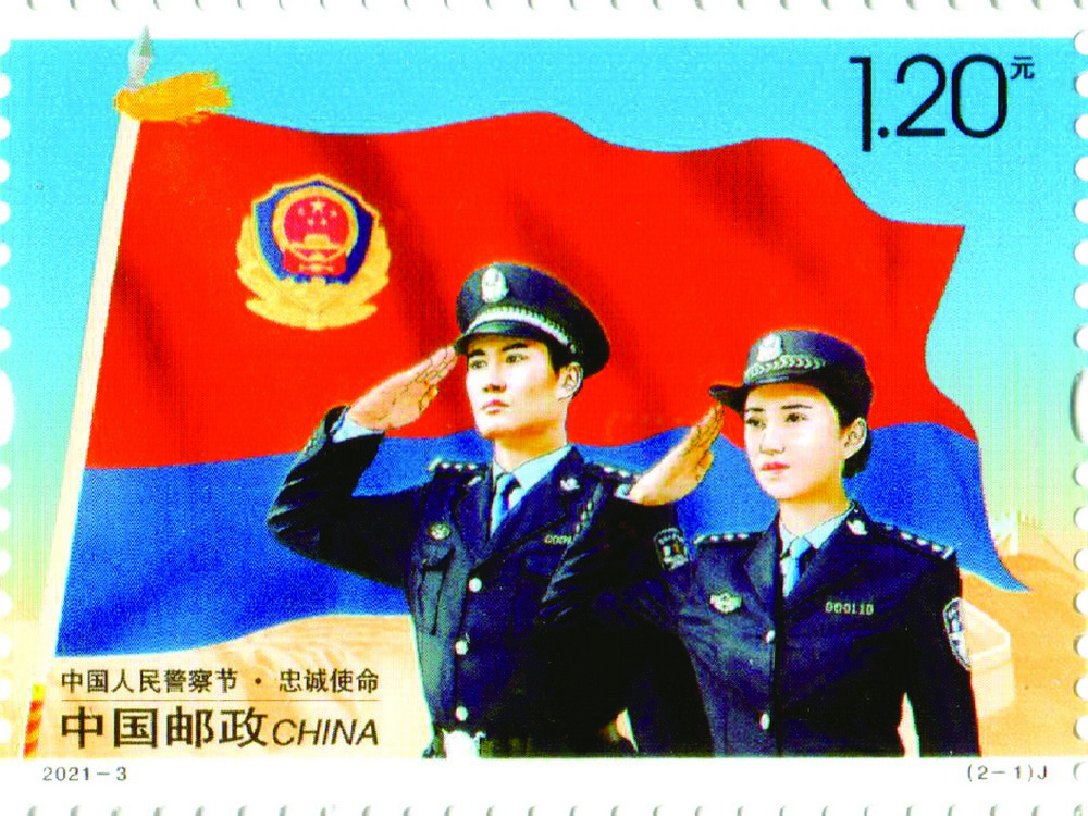 中国邮政定于2021年1月10日发行《中国人民警察节》纪念邮票一套2枚,邮票面值为2.40元,计划发行量800万套。