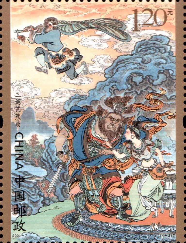 中国邮政定于2021年4月23日发行《中国古典文学名著——西游记(四)》特种邮票一套4枚。邮票图案名称分别为:真假美猴王、三调芭蕉扇、小雷音遭厄、盘丝洞遇劫。全套邮票面值为4.80元,邮票计划发行量870万套,版式二计划发行量105万版,另发行四方连邮票折一本,计划发行量13万本。