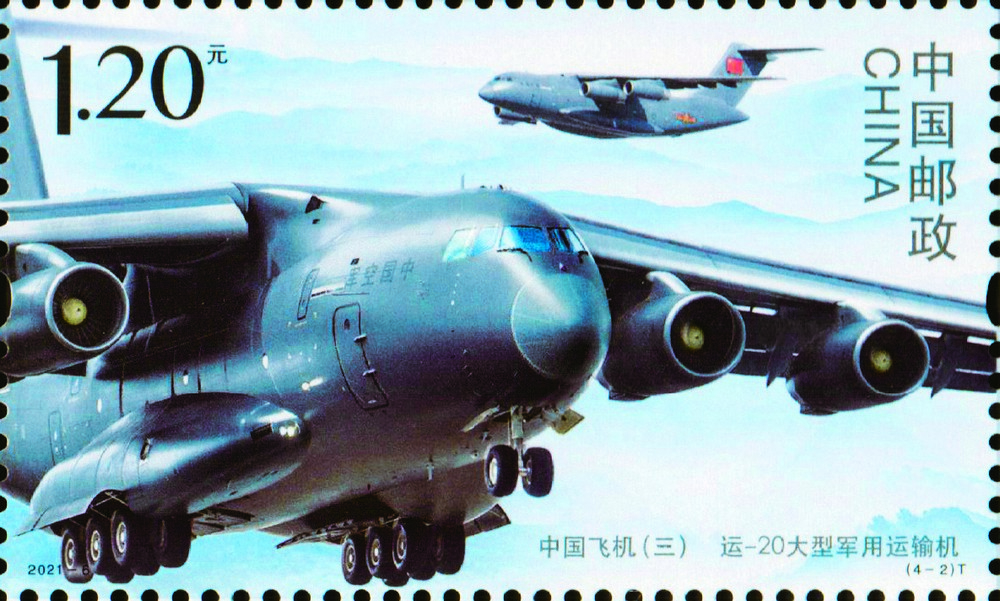 中国邮政定于2021年4月17日发行《中国飞机(三)》特种邮票一套4枚,全套邮票面值为4.80元,邮票计划发行数量800万套,版式二计划发行数量105万版,另发行本票册一本,售价50元,计划发行数量10万本。