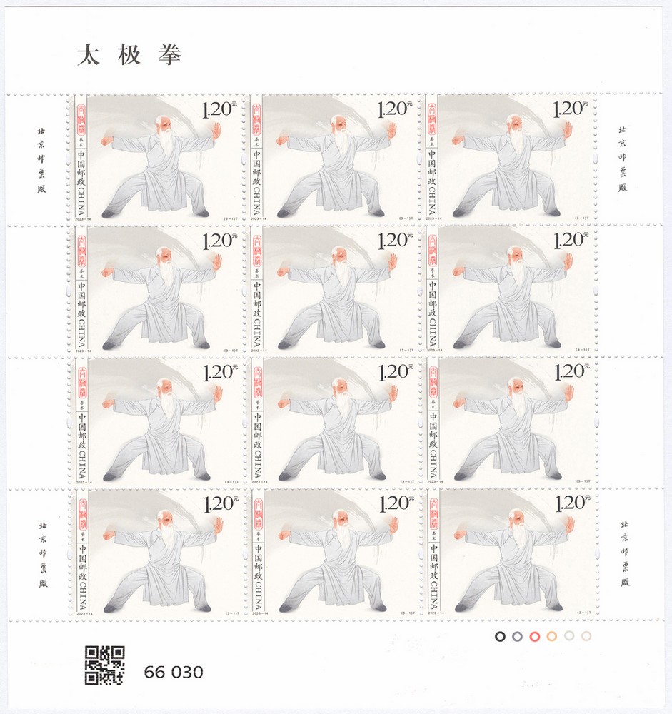 中国邮政定于2023年8月8日发行《太极拳》特种邮票一套3枚,邮票图案内容分别为:拳术、器械、推手。全套邮票面值3.60元。邮票计划发行数量为710万套。